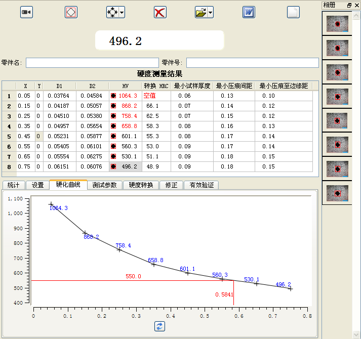 11、測量完畢后自動生成硬度梯度曲線圖。